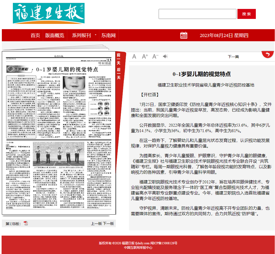 福建衛(wèi)生報第13版 2023年8月24日 鏈接:https://fjwsb.fjdaily.com/pc/con/202308/24/content_299887.html