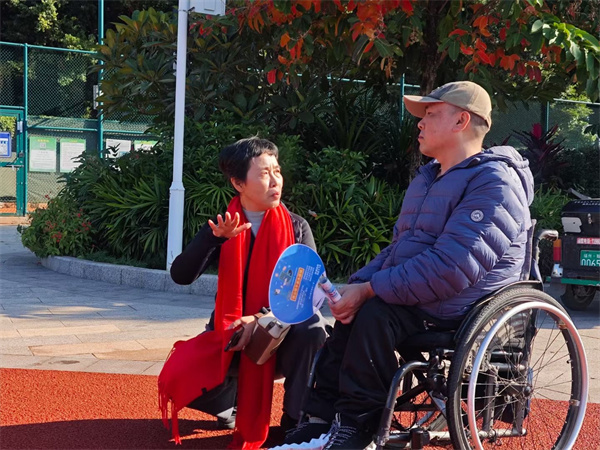 志愿者向現(xiàn)場參加活動的老年人居民、殘疾人居民普及科學(xué)健身知識,解讀測試結(jié)果報告(洪山鎮(zhèn)供圖) 福建省殘疾人體育研究指導(dǎo)中心的工作人員面對面向現(xiàn)場參加活動的老年人居民、殘疾人居民普及科學(xué)健身知識,解讀測試結(jié)果報告,手把手引導(dǎo)老年人堅持科學(xué)運動,養(yǎng)成健康生活方式,并發(fā)放《科學(xué)健身手冊》,對臥床在家的居民朋友,志愿者將體育器材、健身方法送入殘疾人家庭,讓殘疾人在家享受科學(xué)體育康復(fù)和健身意識,為其健康保駕護航。 福建師范大學(xué)體育科學(xué)學(xué)院殘疾人體育研究中心黨支部書記的江蕓教授為社區(qū)及福樂家園社會體育指導(dǎo)員及工作人員開展體育助殘志愿服務(wù)培訓(xùn),以更加專業(yè)的視角通過提問、討論、現(xiàn)場解答的形式解難答疑更接地氣、更解決問題。 洪山橋社區(qū)黨委副書記林雪娟表示:“殘疾人是社區(qū)中不可忽視的群體,應(yīng)該享有平等的機會和無障礙的環(huán)境,而社區(qū)作為社會治理的基本單元,有責(zé)任為殘疾人提供更好的生活環(huán)境和服務(wù),為他們提供更多的支持和幫助,以便能夠充分發(fā)揮他們的潛力?!?本次活動旨在為殘疾人并聯(lián)合和依靠殘疾人挽救和實現(xiàn)可持續(xù)發(fā)展目標(biāo)提供體質(zhì)測試和科學(xué)健身指導(dǎo)服務(wù),宣傳“健康管理在前,醫(yī)療服務(wù)在后”的整體健康觀念,以使老年人、殘疾人能夠享受到公平且系統(tǒng)的健康科普和運動指導(dǎo)服務(wù)。