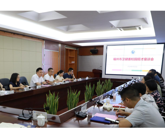 為進(jìn)一步充實(shí)鄉(xiāng)村醫(yī)療衛(wèi)生人才隊(duì)伍,做好2024年大學(xué)生鄉(xiāng)村醫(yī)生專項(xiàng)計(jì)劃招聘工作,促進(jìn)我市鄉(xiāng)村醫(yī)療衛(wèi)生體系健康發(fā)展,9月3日上午,福州市衛(wèi)生健康委員會(huì)主任郭勇、副主任鐘志華帶領(lǐng)基衛(wèi)處、人事處、福清市和長(zhǎng)樂區(qū)有關(guān)人員赴福建衛(wèi)生職業(yè)技術(shù)學(xué)院開展大學(xué)生鄉(xiāng)村醫(yī)生專項(xiàng)計(jì)劃招聘座談會(huì)。福建衛(wèi)生職業(yè)技術(shù)學(xué)院副校長(zhǎng)黃銘珊、實(shí)習(xí)實(shí)訓(xùn)中心、學(xué)生工作部、 醫(yī)學(xué)院、護(hù)理學(xué)院、藥學(xué)院、醫(yī)學(xué)技術(shù)與工程學(xué)院、公共健康與衛(wèi)生管理學(xué)院領(lǐng)導(dǎo)和有關(guān)工作人員參加了座談。