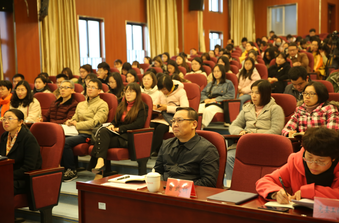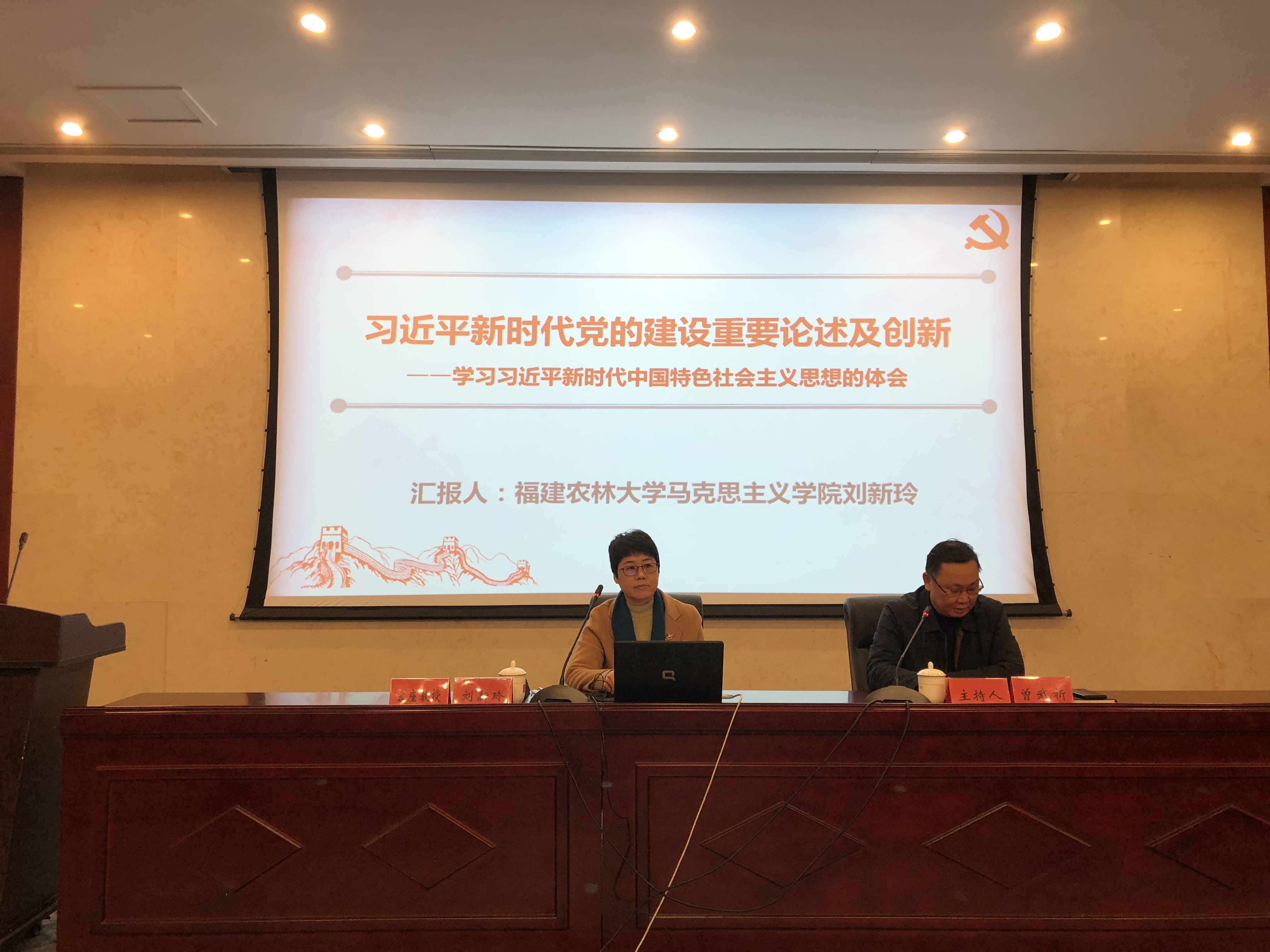 為深入學(xué)習(xí)習(xí)近平新時(shí)代中國(guó)特色社會(huì)主義思想和黨的十九大精神,貫徹落實(shí)新時(shí)代黨的建設(shè)總要求,不斷提高黨的建設(shè)質(zhì)量,推進(jìn)全面從嚴(yán)治黨工作學(xué)深悟透、入心入實(shí),1月3日下午,我院“衛(wèi)院之原”馬克思主義論壇在實(shí)訓(xùn)樓報(bào)告廳舉行。福建農(nóng)林大學(xué)馬克思主義學(xué)院院長(zhǎng)、福建衛(wèi)職院客座教授劉新玲,為我院教職工作了題為《習(xí)近平新時(shí)代黨的建設(shè)重要論述及創(chuàng)新——學(xué)習(xí)習(xí)近平新時(shí)代中國(guó)特色社會(huì)主義思想的體會(huì)》的專題講座。講座由學(xué)院黨委書(shū)記曾武祈主持,黃銘珊副院長(zhǎng)以及各處室和各系部教職工共230多人參加了專題講座。