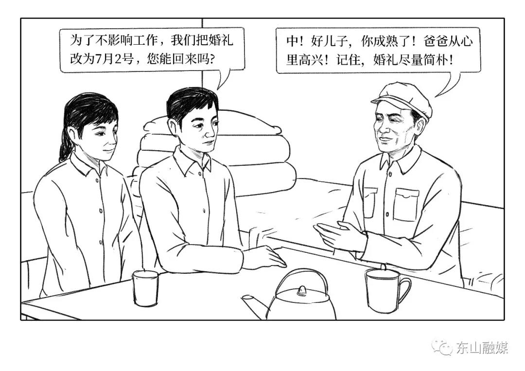 臨近婚期,他們才把結婚的喜事稟報母親。母親非常高興??墒钱斔麄儼艳k喜事的日期告訴父親谷文昌時,父親說:“7月1日結婚的想法很好!可是我這里太忙了,7月1日沒法回家。”谷豫閩深知父親的性格,叫他放下手中工作回家是不可能的。“這樣吧”,谷豫閩跟父親說:“我們把婚禮改為7月2號,您能回來嗎?”父親顯得非常激動:“中!好兒子,你成熟了!爸爸從心里高興!記住,婚禮盡量簡樸!”