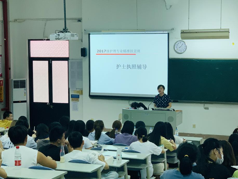 9月秋季開學(xué)后,護(hù)理系開展了為期一周的護(hù)考線下培訓(xùn),為精準(zhǔn)扶貧班學(xué)生進(jìn)行考前強(qiáng)化輔導(dǎo)。謝濤與龔海蓉兩位系部領(lǐng)導(dǎo)親自指揮,組織培訓(xùn)團(tuán)隊(duì)制定培訓(xùn)計(jì)劃。