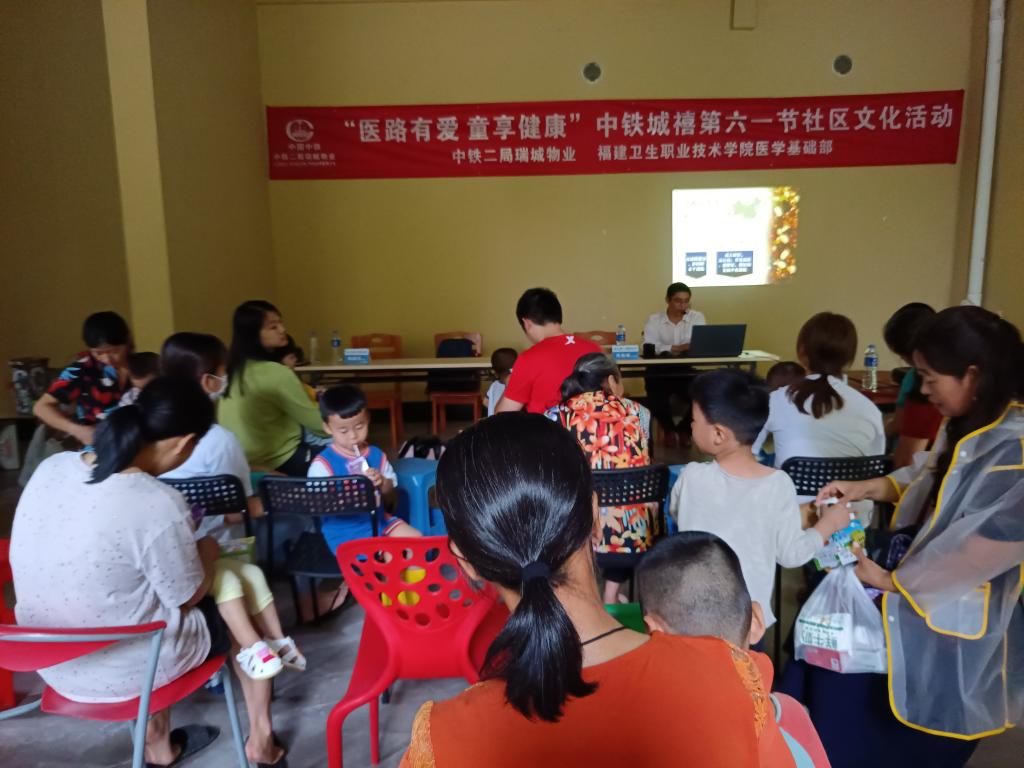 國際“六一”兒童節(jié)前夕,為踐行健康中國行動(dòng),關(guān)愛兒童健康,2021年5月29日上午,醫(yī)學(xué)基礎(chǔ)部聯(lián)合護(hù)理學(xué)院、福建醫(yī)科大學(xué)附屬第一醫(yī)院共同在閩侯荊溪社區(qū)中鐵城舉辦了“醫(yī)路有愛,童享健康”健康知識(shí)進(jìn)社區(qū)活動(dòng),該活動(dòng)也是2021年我校科技周與職業(yè)教育周系列活動(dòng)之一。
