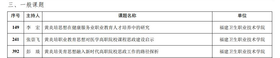 根據(jù)中華職業(yè)教育社《關(guān)于“第一屆黃炎培職業(yè)教育思想研究規(guī)劃課題”評審結(jié)果公示的通知》,我校三項課題獲一般課題立項。