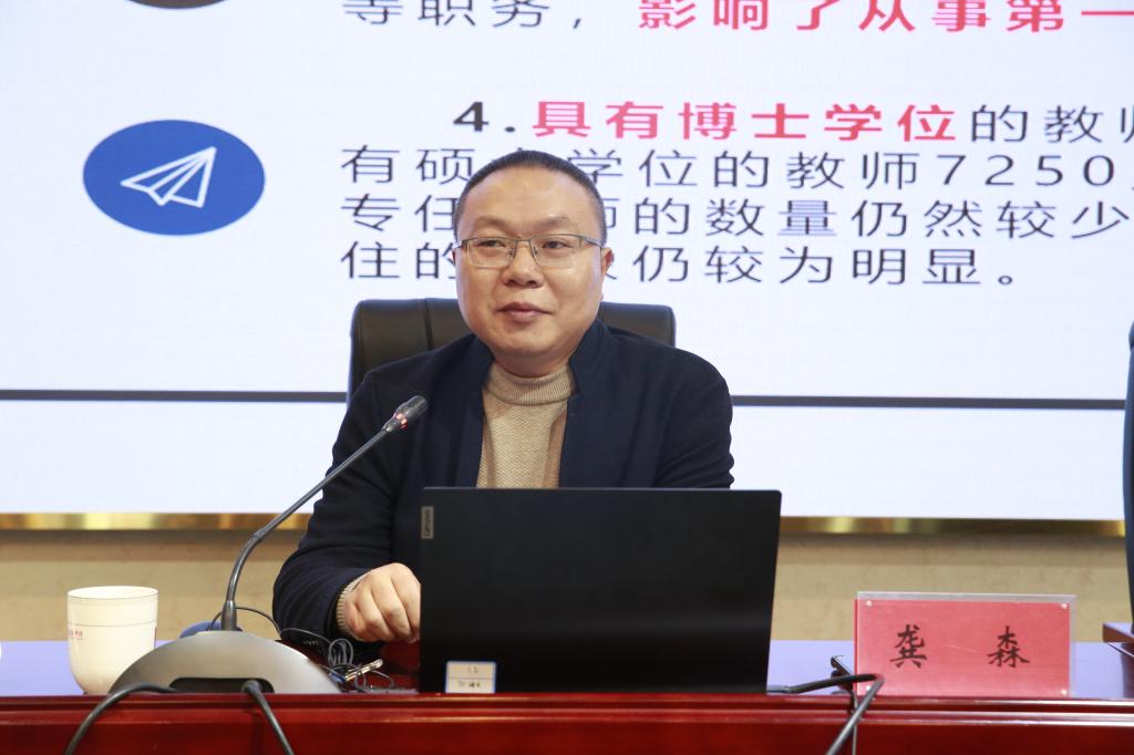 為提升我校高等職業(yè)教育師資隊伍建設(shè), 1月14日下午,我校邀請福建省職業(yè)技術(shù)教育中心主任龔森在實訓(xùn)樓4樓報告廳開展題為《職業(yè)教育教師教學(xué)發(fā)展若干思考》的講座。講座由教務(wù)處副處長何舒瀾主持,各二級院(系、部)主任、分管教學(xué)副主任、專業(yè)帶頭人、教研室主任、各教學(xué)團(tuán)隊骨干成員及骨干教師代表共182人參加講座。