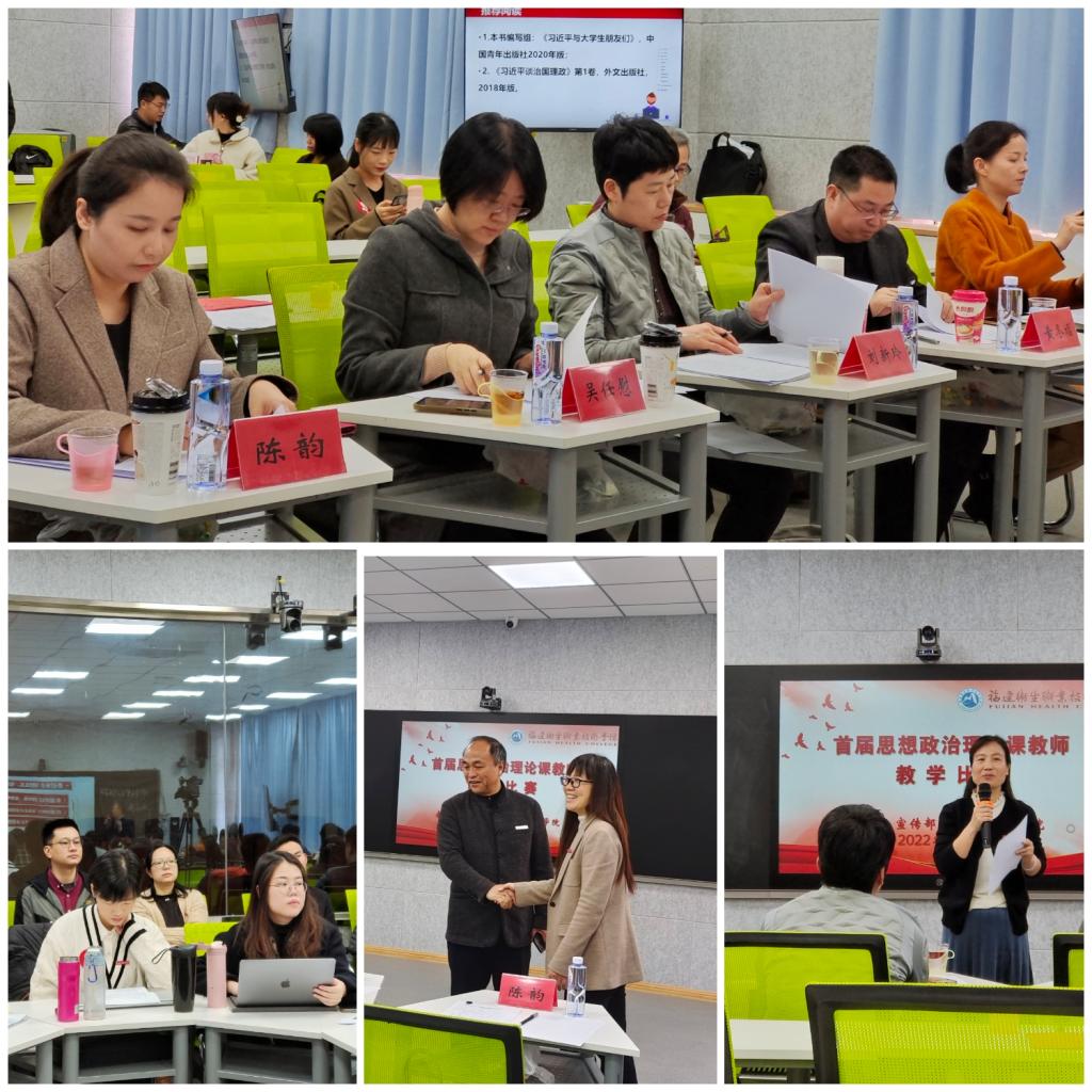 2022年3月3日,我校首屆思想政治理論課教師教學比賽現(xiàn)場決賽在實訓樓智慧教室1舉行。決賽邀請到了福建農(nóng)林大學馬克思主義學院院長劉新玲、福建醫(yī)科大學馬克思主義學院院長吳任慰、福建信息職業(yè)技術學院馬克思主義學院院長黃冬福、福建中醫(yī)藥大學馬克思主義學院副院長陳韻、福建師范大學馬克思主義學院原理教研部主任楊小霞擔任評委,校長許能鋒、宣傳部部長宋維、教務處副處長李淼淼出席比賽,全體專兼職思政課教師到場觀摩。比賽由馬克思主義學院副院長來朋珍主持。