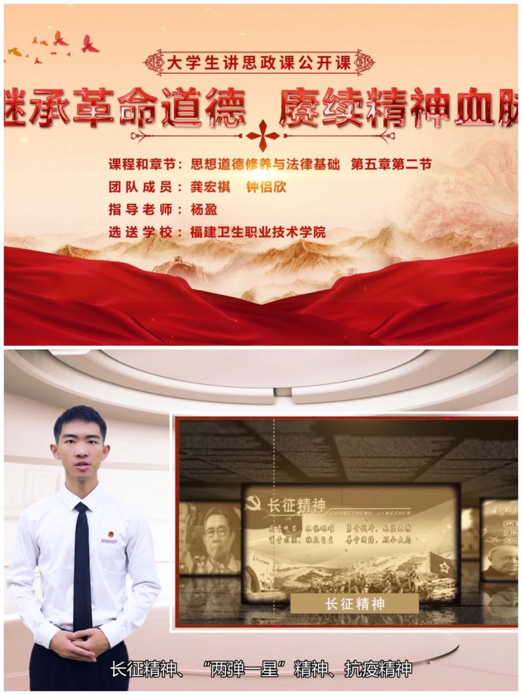 龔宏祺、鐘侶欣同學(xué)的參賽作品《繼承革命道德,賡續(xù)精神血脈》(指導(dǎo)老師:楊盈、熊美蘭),榮獲“百年輝煌路·奮斗正當(dāng)時(shí)”第五屆全省高校大學(xué)生講思政課公開課展示活動(dòng)三等獎(jiǎng)。