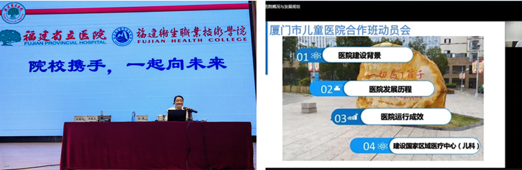 為進(jìn)一步加強(qiáng)校企合作,更好地培養(yǎng)高素質(zhì)技術(shù)技能人才,5月26日,護(hù)理學(xué)院聯(lián)合福建省立醫(yī)院、廈門市兒童醫(yī)院在學(xué)術(shù)報(bào)告廳舉辦校企合作班宣講會(huì)。福建省立醫(yī)院護(hù)理部副主任金爽、廈門市兒童醫(yī)院紀(jì)委書記楊暉、護(hù)理學(xué)院黨政領(lǐng)導(dǎo)班子、院辦公室負(fù)責(zé)人、2021級(jí)輔導(dǎo)員以及2021級(jí)護(hù)理專業(yè)全體學(xué)生參加宣講會(huì)。