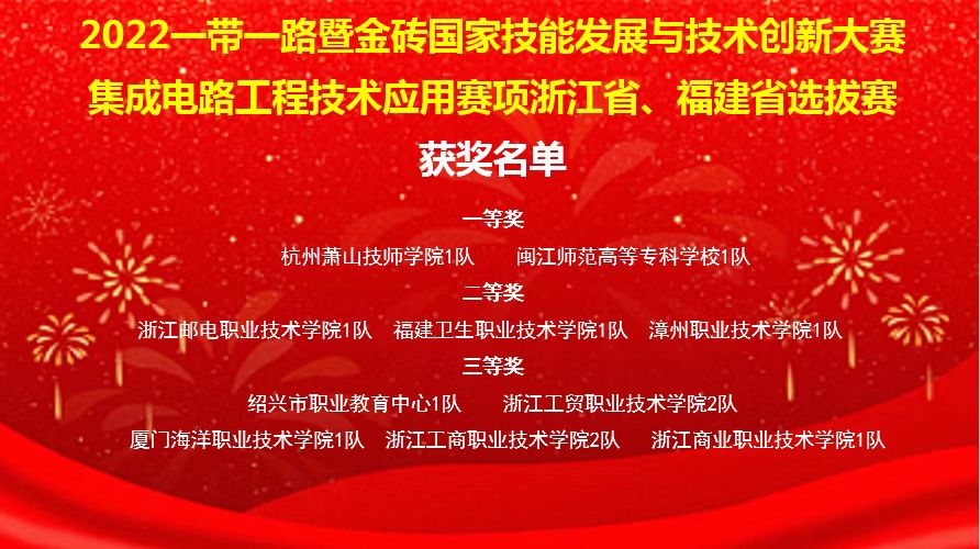 高手過招,杭城論劍。2022年9月17日至19日,2022“一帶一路”暨金磚國家技能發(fā)展與技術(shù)創(chuàng)新大賽浙江省、福建省選拔賽集成電路工程技術(shù)應(yīng)用賽項(xiàng)在杭州蕭山技師學(xué)院舉行。本次大賽由金磚國家工商理事會、一帶一路暨金磚國家技能發(fā)展國際聯(lián)盟、中國科協(xié)“一帶一路”暨金磚國家技能發(fā)展與技術(shù)創(chuàng)新培訓(xùn)中心主辦,來自福建、浙江兩省的17支代表隊(duì)共聚杭州,展開激烈的角逐。我校醫(yī)學(xué)技術(shù)系21級智能醫(yī)療裝備技術(shù)專業(yè)黃創(chuàng)偉、江馨怡、張敏晶三位同學(xué)組成的參賽隊(duì)斬獲二等獎。這是我校首次在該賽項(xiàng)獲獎,也是獲獎代表隊(duì)中唯一一所醫(yī)藥衛(wèi)生類院校。