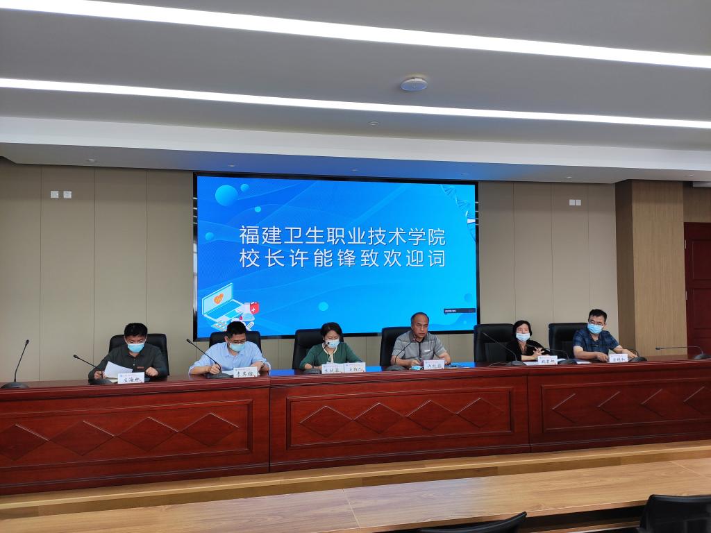 由于疫情原因,會議采取線上線下相結(jié)合的方式,主會場設(shè)在我校行政樓六樓會議室,校外參會人員以線上方式同步參會。福建省醫(yī)藥衛(wèi)生行業(yè)職業(yè)教育指導(dǎo)委員會常務(wù)副主任、校長許能鋒出席會議,教務(wù)處負(fù)責(zé)人魏碧娜、現(xiàn)代教育技術(shù)中心主任李其鏗、醫(yī)學(xué)技術(shù)系主任翁繩和、健康管理系主任莊海林、藥學(xué)院副院長李泳寧,以及本批各教材的主編、副主編及編寫人員共100余人參會。會議由副校長朱扶蓉主持。