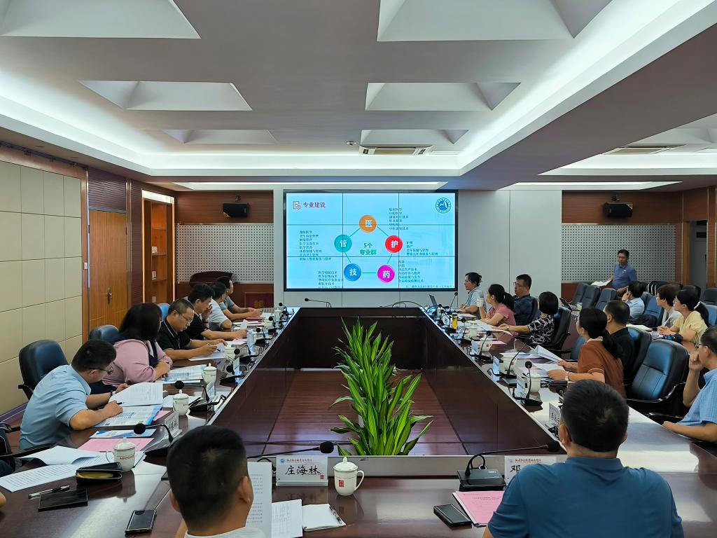 為全面貫徹黨的二十大精神,落實中共中央辦公廳、國務(wù)院辦公廳《關(guān)于深化現(xiàn)代職業(yè)教育體系建設(shè)改革的意見》和省政府辦公廳《關(guān)于進一步推動職業(yè)教育服務(wù)經(jīng)濟社會發(fā)展的十條措施》有關(guān)部署,全面深化產(chǎn)教融合,促進專業(yè)結(jié)構(gòu)與產(chǎn)業(yè)結(jié)構(gòu)良性互動,持續(xù)提升職業(yè)教育適應(yīng)性,謀劃好學(xué)校2024-2026年專業(yè)建設(shè)發(fā)展藍圖。9月26日,學(xué)校召開專業(yè)建設(shè)發(fā)展規(guī)劃(2024-2026年)校外專家論證會,邀請來自相關(guān)行業(yè)管理部門、同行專家和用人單位的7位專家對學(xué)校專業(yè)建設(shè)發(fā)展規(guī)劃進行論證。校黨委書記曾武祈、副校長黃銘珊、相關(guān)職能部門負責(zé)人及各二級院系院長(主任)參加會議。