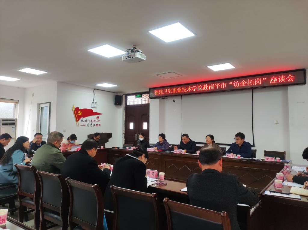 12月7日上午,在福建閩北衛(wèi)生學(xué)校,我校一行與南平市衛(wèi)生健康委員會(huì)、福建閩北衛(wèi)生學(xué)校、南平市第一醫(yī)院、南平市第二醫(yī)院、南平市人民醫(yī)院、建陽(yáng)區(qū)疾控中心、建陽(yáng)區(qū)總醫(yī)院、邵武市總醫(yī)院、武夷山市立總醫(yī)院、建甌市總醫(yī)院、松溪縣總醫(yī)院有關(guān)領(lǐng)導(dǎo)進(jìn)行座談交流。南平市衛(wèi)健委副主任王智勇對(duì)我校人才培養(yǎng)質(zhì)量給予了高度評(píng)價(jià)。他還介紹了南平市生源畢業(yè)生的就業(yè)和定向委培情況,統(tǒng)計(jì)分析了南平市近三年來(lái)醫(yī)學(xué)專業(yè)人才需求數(shù)量,希望學(xué)校能繼續(xù)為南平市醫(yī)療系統(tǒng)培養(yǎng)“留得住、用得上”的本土醫(yī)學(xué)人才。曾武祈表示,學(xué)校的辦學(xué)定位就是面向基層醫(yī)療培養(yǎng)人才,希望此次走訪能夠?yàn)楫厴I(yè)生們拓寬更多的就業(yè)機(jī)會(huì)。隨后,各地市醫(yī)院負(fù)責(zé)人就定向委培、校企合作、專業(yè)人才需求、畢業(yè)生就業(yè)問(wèn)題等方面進(jìn)行了深入探討。