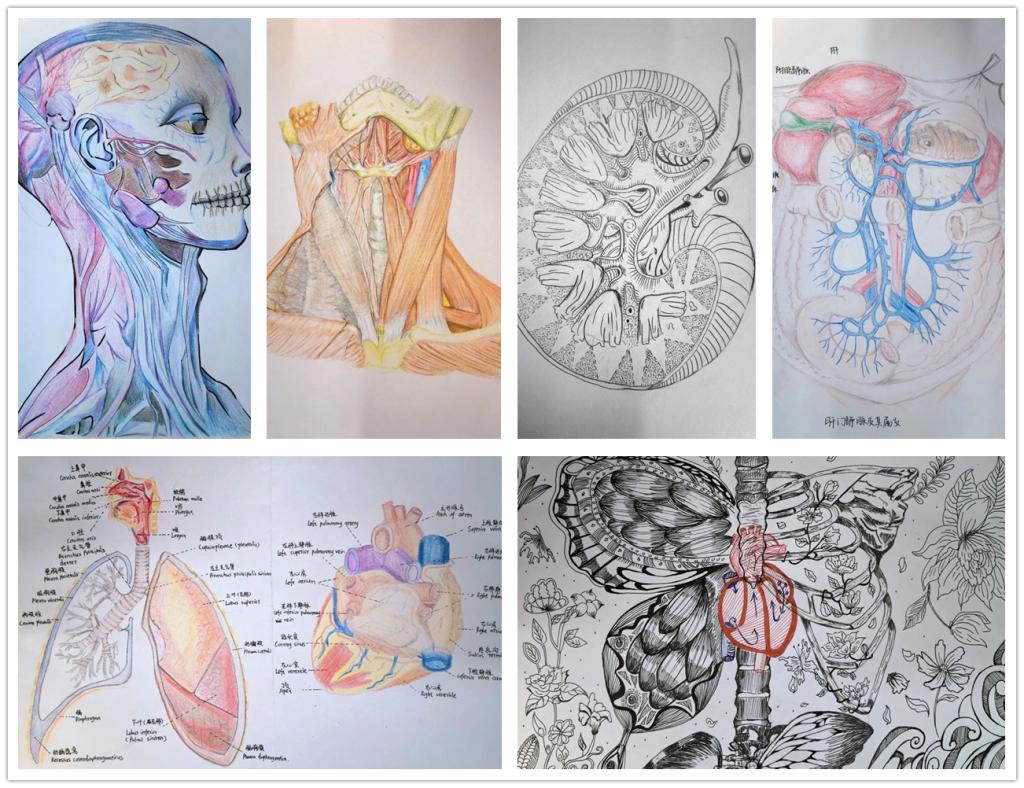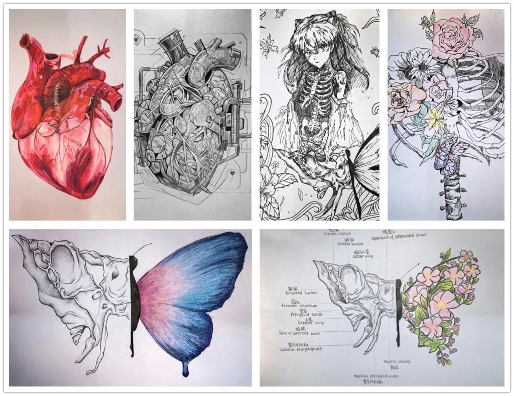 本次人體解剖繪畫大賽通知一發(fā)布,便吸引了一大批隱藏的靈魂畫手,大賽共收到120余份參賽作品。選手們畫工精湛、構(gòu)思新穎,作品從骨學(xué)到肌學(xué),從呼吸系統(tǒng)到心血管系統(tǒng),以素描為基礎(chǔ),將醫(yī)學(xué)解剖與藝術(shù)完美結(jié)合,展現(xiàn)了解剖之美,詮釋了人體的神奇與生命的偉大。
