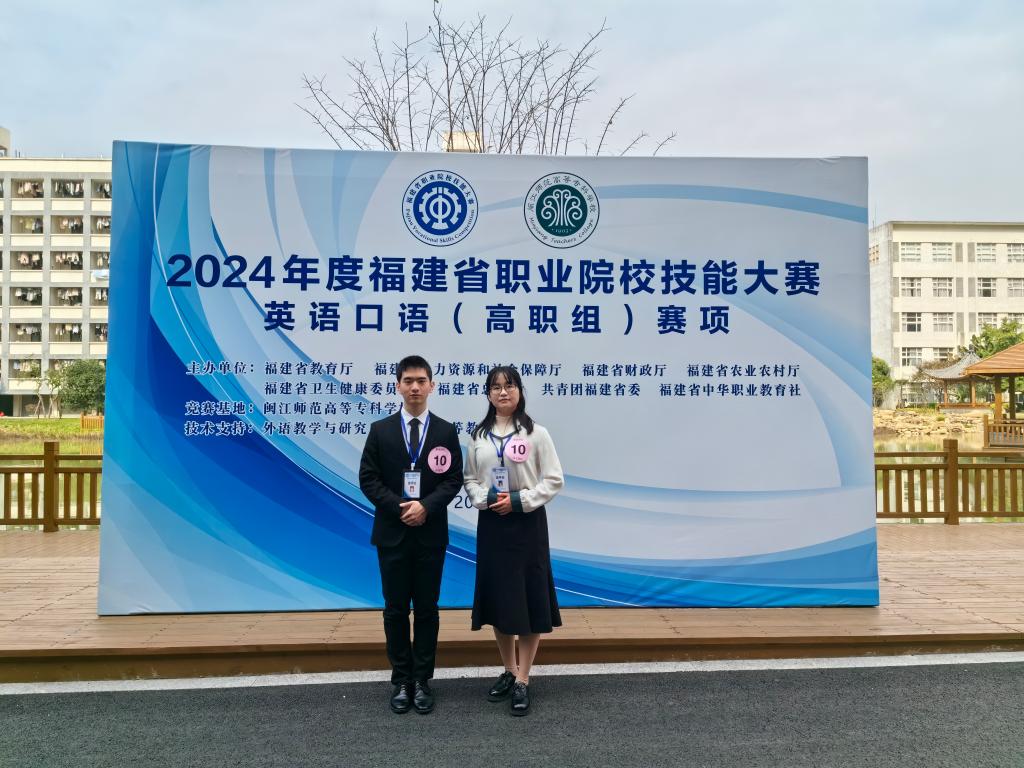 12月29日至31日,2024年福建省職業(yè)院校技能大賽高職組“英語(yǔ)口語(yǔ)”賽項(xiàng)在閩江師范高等專(zhuān)科學(xué)校舉行。此次競(jìng)賽分為英語(yǔ)專(zhuān)業(yè)組和非專(zhuān)業(yè)組,賽制由以往的“學(xué)生個(gè)人賽”轉(zhuǎn)變?yōu)椤皫熒悺?。其中非?zhuān)業(yè)組共有來(lái)自全省40多所高職院校的師生隊(duì)伍參加。我校2022級(jí)護(hù)理315班黃道凱同學(xué)和人文教學(xué)部外語(yǔ)教研室盧叢珊老師經(jīng)過(guò)兩個(gè)多月的賽前培訓(xùn),在比賽中團(tuán)結(jié)協(xié)作,榮獲非專(zhuān)業(yè)組二等獎(jiǎng)。