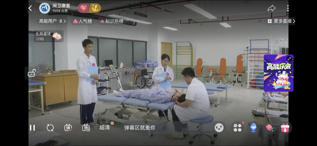 決賽采取團(tuán)隊(duì)作戰(zhàn)形式隨機(jī)抽取案例,面對(duì)標(biāo)準(zhǔn)化病人,參賽團(tuán)隊(duì)分工進(jìn)行康復(fù)問診、康復(fù)評(píng)定和康復(fù)治療操作項(xiàng)目。比賽過程充分展示康復(fù)工作團(tuán)隊(duì)的協(xié)作高要求與康復(fù)診療技巧的多樣性,體現(xiàn)康復(fù)治療師在溝通、判斷、關(guān)懷等方面的綜合素質(zhì)。教室及線上的觀眾運(yùn)用網(wǎng)絡(luò)平臺(tái)實(shí)時(shí)觀看現(xiàn)場(chǎng)直播,沉浸式體驗(yàn)賽事過程。