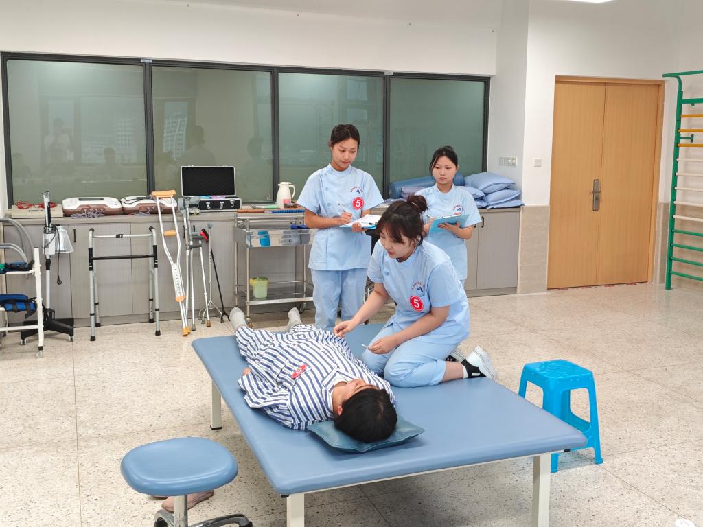 實(shí)戰(zhàn)練精兵,比武促進(jìn)步。5月12日,醫(yī)學(xué)院康復(fù)治療技術(shù)教研室聯(lián)合醫(yī)學(xué)院團(tuán)總支舉行2024年康復(fù)治療技術(shù)專業(yè)技能競(jìng)賽。本次競(jìng)賽采用線下比賽+線上直播的形式,邀請(qǐng)福建中醫(yī)藥大學(xué)附屬康復(fù)醫(yī)院物理治療部成人神經(jīng)治療組組長(zhǎng)李中元、福建中醫(yī)藥大學(xué)康復(fù)醫(yī)學(xué)院物理治療教研室副主任羅佳、福建醫(yī)科大學(xué)附屬第一醫(yī)院康復(fù)醫(yī)學(xué)科治療師長(zhǎng)韓瓊擔(dān)任總評(píng)委,醫(yī)學(xué)院副院長(zhǎng)鄧元榮到場(chǎng)指導(dǎo)比賽工作。