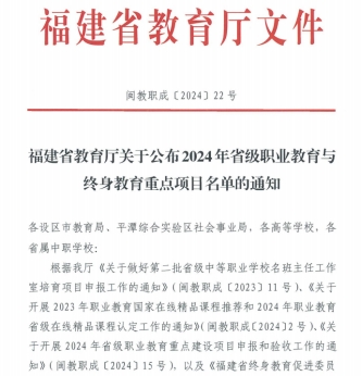 近日,福建省教育廳正式揭曉2024年度省級(jí)職業(yè)教育重點(diǎn)項(xiàng)目名單,我校在這場(chǎng)教育盛宴中喜訊連連,再創(chuàng)佳績(jī),共有24門(mén)精品課程入選省級(jí)職業(yè)教育在線(xiàn)精品課程名單,更有5門(mén)課程位列福建省職業(yè)教育課程思政示范課程榜單,在省級(jí)在線(xiàn)精品課程與省級(jí)課程思政示范課程的數(shù)量上,我校獨(dú)占鰲頭,穩(wěn)居福建省醫(yī)藥衛(wèi)生類(lèi)高職院校榜首。同時(shí),我校智能醫(yī)療裝備技術(shù)專(zhuān)業(yè)教學(xué)資源庫(kù)成功躋身省級(jí)職業(yè)教育專(zhuān)業(yè)教學(xué)資源庫(kù)之列,藥學(xué)專(zhuān)業(yè)群教學(xué)資源庫(kù)順利通過(guò)第六批省級(jí)職業(yè)教育專(zhuān)業(yè)教學(xué)資源庫(kù)驗(yàn)收。這一系列殊榮的獲得,不僅是我校深入貫徹教育數(shù)字化戰(zhàn)略行動(dòng)計(jì)劃,以強(qiáng)化關(guān)鍵辦學(xué)能力為核心,全力推動(dòng)教育教學(xué)改革創(chuàng)新的生動(dòng)寫(xiě)照,更彰顯了我校在職業(yè)教育領(lǐng)域的卓越實(shí)力。