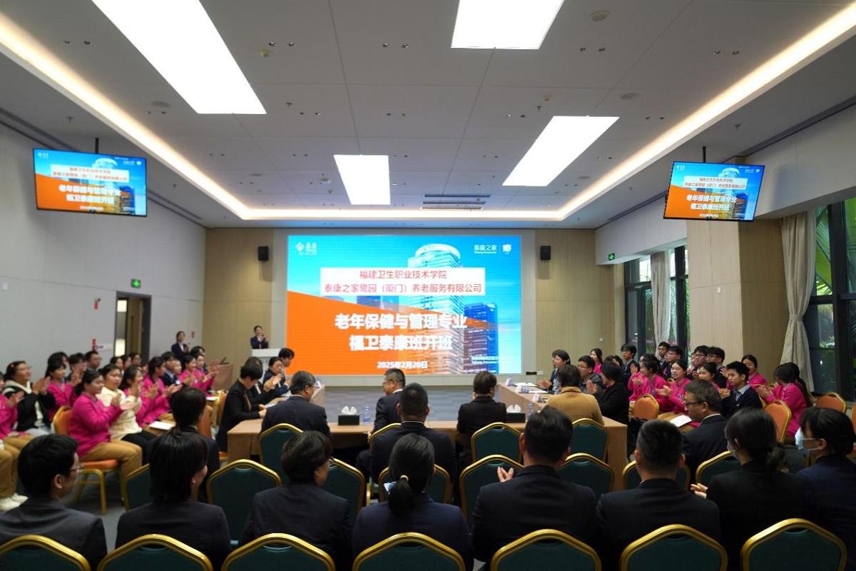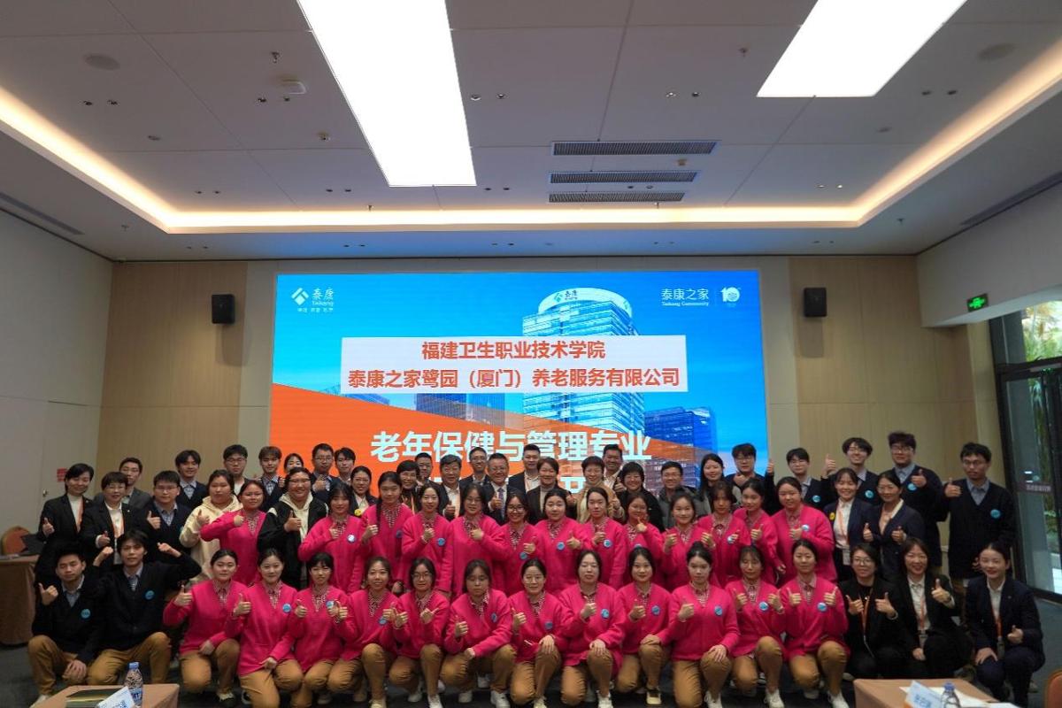 此次開班儀式的成功舉辦,標志著福建衛(wèi)生職業(yè)技術(shù)學院與泰康之家·鷺園在深化產(chǎn)教融合、推進校企合作方面邁出了堅實的一步。未來,雙方將圍繞人才培養(yǎng)、課程研發(fā)、實踐基地建設等方面開展更廣泛、更深入的合作。泰康之家作為國內(nèi)領(lǐng)先的高端醫(yī)養(yǎng)服務品牌,擁有國際化的康養(yǎng)視野、科學的管理、教育理念、優(yōu)秀的專業(yè)照護團隊及舒適的康養(yǎng)環(huán)境、先進的適老化設施設備,尤其是認知癥照護方面,積累了豐富的經(jīng)驗,為校企合作創(chuàng)造了良好的教學平臺及硬件軟件條件。而福建衛(wèi)生職業(yè)技術(shù)學院,作為一所具有137年深厚醫(yī)學教育底蘊的院校,在人才培養(yǎng)、專業(yè)建設、社會服務等方面成果顯著,相信校企雙方的合作,是強強聯(lián)合、優(yōu)勢互補,將為同學們搭建起貫通課堂與崗位、理論與實踐緊密連接的學習成長平臺,助力國家在認知癥照護領(lǐng)域培養(yǎng)更多優(yōu)秀的專業(yè)人才。
