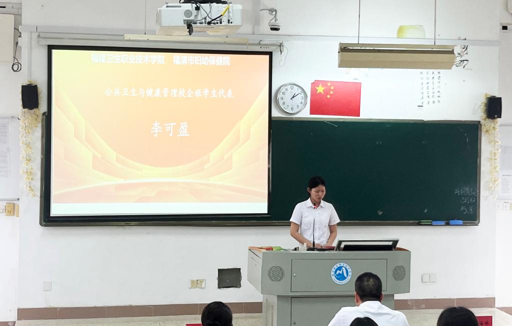 校企班學(xué)生代表李可盈分享了自己在福清市婦幼保健院一年以來的學(xué)習(xí)和生活。