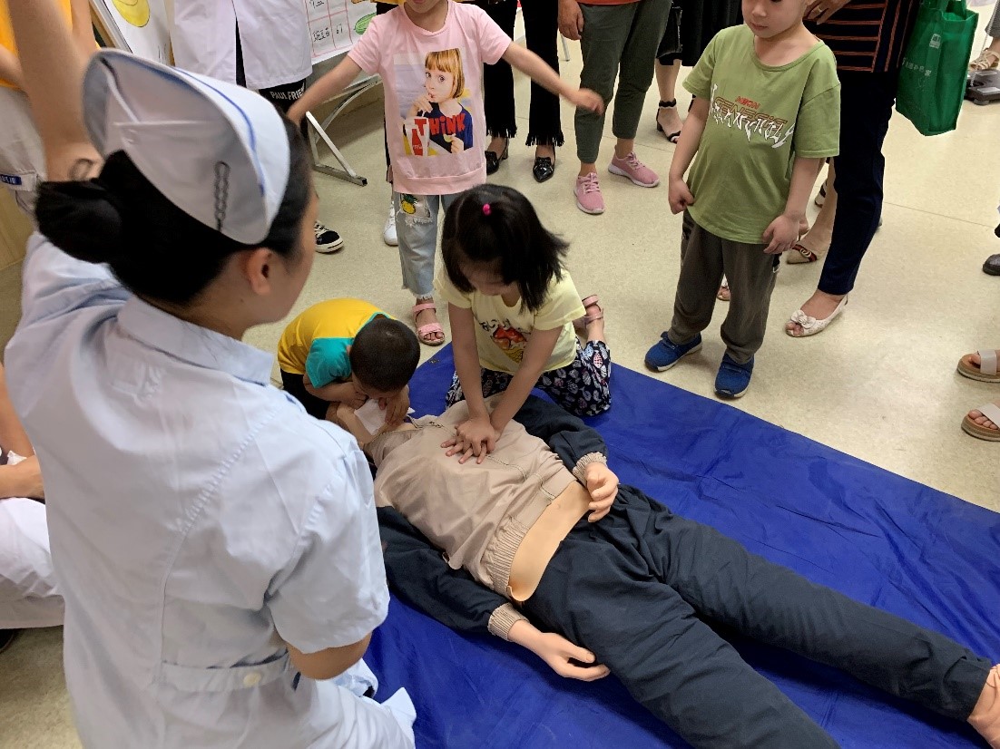 活動的尾聲,學生們現(xiàn)場為大家展示心肺復蘇的操作流程,并解釋“黃金4分鐘”的重要性,普及應急救援知識和實際救援技能。