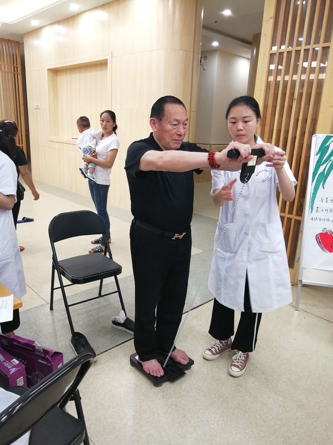 在隨后開展的義診活動中,學生們熱情地為老人們測量血壓、BMI、體脂率、內臟脂肪指數(shù)等數(shù)據(jù),并詢問調查日常生活健康信息,為其評估健康風險;特邀的幾位專家,根據(jù)評估情況,為老人們提供醫(yī)療服務。
