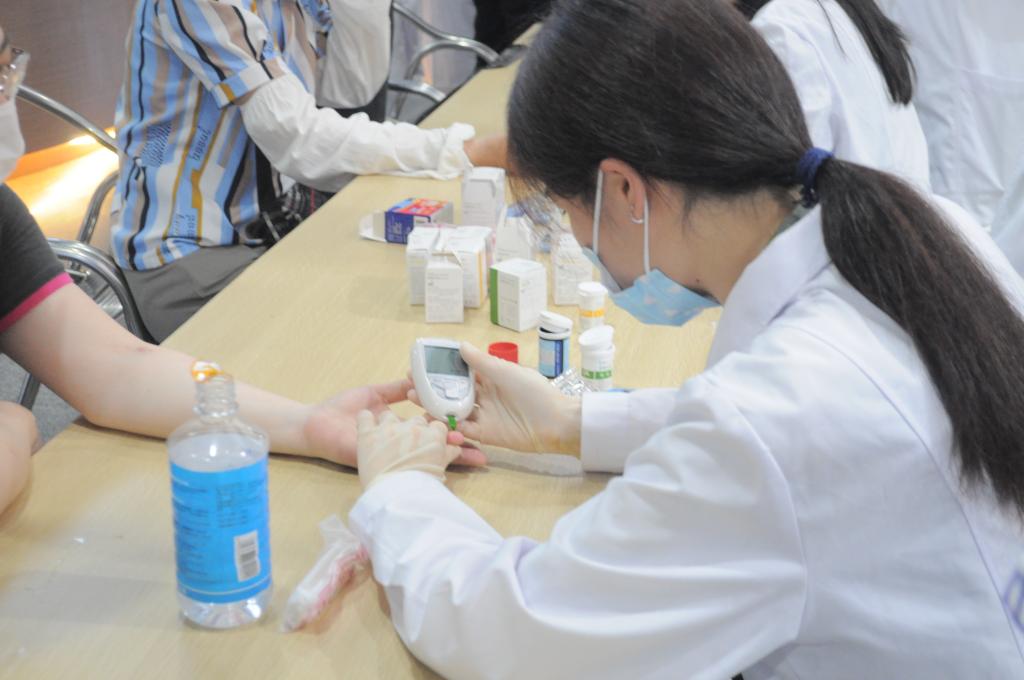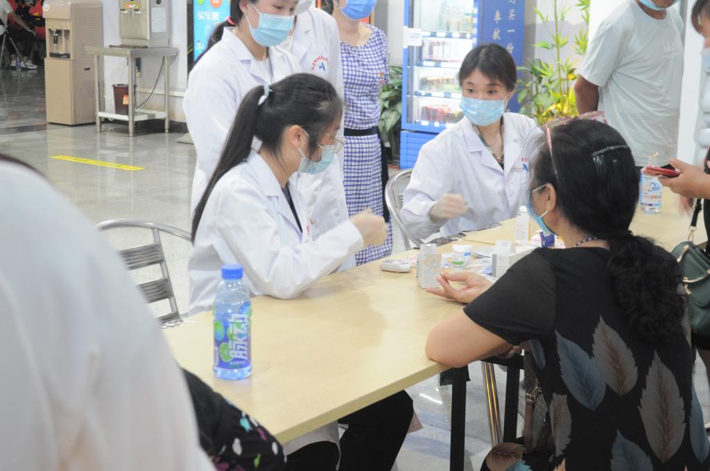 防控糖尿病,科學(xué)控糖。醫(yī)學(xué)檢驗技術(shù)專業(yè)師生由黨員教師盧虹帶隊,開展血糖和尿酸檢測服務(wù)。師生們還結(jié)合檢測結(jié)果,為群眾科普糖尿病知識,并熱心引導(dǎo)群眾關(guān)注血糖健康,宣傳科學(xué)控糖的有效措施。