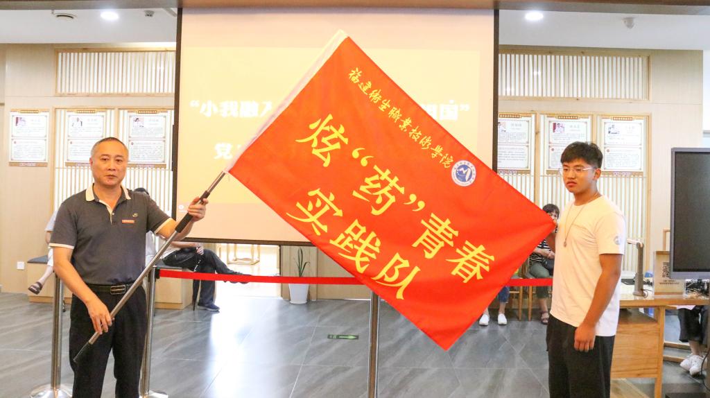 隨后,藥學(xué)院黨總支書記鄭力宏將實(shí)踐隊的隊旗授予實(shí)踐隊隊長李忠緒,標(biāo)志本次福建衛(wèi)生職業(yè)技術(shù)學(xué)院藥學(xué)院"炫藥青春"實(shí)踐隊的瑞來春之行正式開啟。
