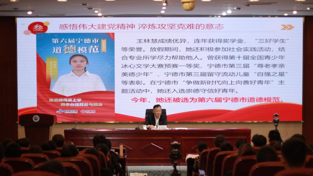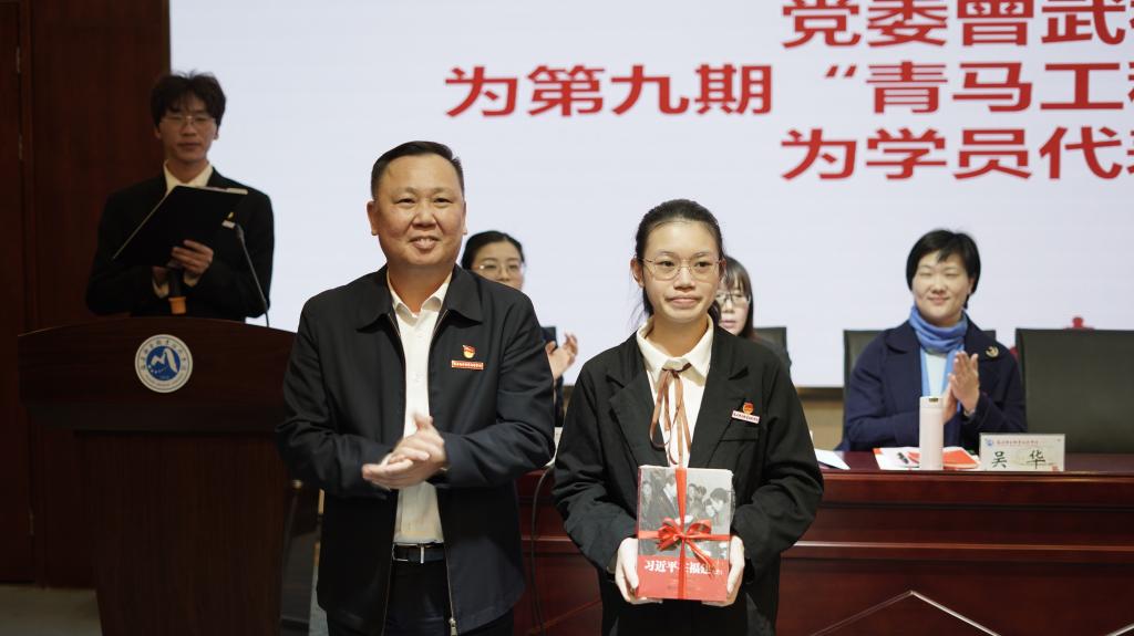 曾武祈為第九期“青馬工程”培訓(xùn)班授旗并贈予學(xué)生代表《習(xí)近平在福建》系列書籍,勉勵青馬學(xué)員從習(xí)近平總書記在閩工作的點點滴滴中磨礪自我,篤定共產(chǎn)主義信仰。