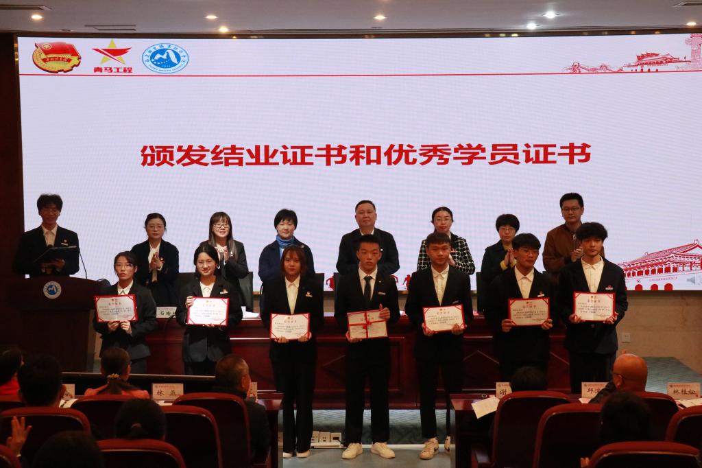 團(tuán)委副書記石瑜婷宣讀第八期“青馬工程”培訓(xùn)班結(jié)業(yè)名單與優(yōu)秀學(xué)員名單,與會領(lǐng)導(dǎo)為第八期學(xué)生代表頒發(fā)結(jié)業(yè)證書和優(yōu)秀學(xué)員證書。