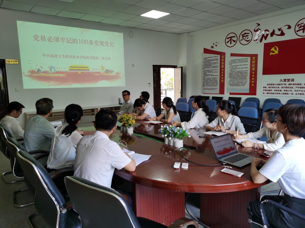 為了進(jìn)一步學(xué)習(xí)貫徹《中國共產(chǎn)黨紀(jì)律處分條例》,嚴(yán)守黨紀(jì)上遠(yuǎn)離違紀(jì)紅線,同時為了進(jìn)一步全面貫徹黨的教育方針,落實立德樹人根本任務(wù),藥學(xué)院第二黨支部于2021617日召開專題學(xué)習(xí)會,深入學(xué)習(xí)《黨員必須牢記的100條黨規(guī)黨紀(jì)——解讀》(以下簡稱《100條黨紀(jì)黨規(guī)》)與《中國共產(chǎn)黨普通高等學(xué)?;鶎咏M織工作條例》(以下簡稱《條例》)。本次專題學(xué)習(xí)由藥學(xué)院第二黨支部書記劉丹丹同志主持。