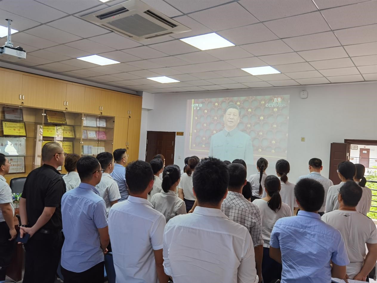 隨后,黨員在會(huì)議室一起觀看了“慶祝中國共產(chǎn)黨成立一百周年大會(huì)”直播,在播放國歌時(shí),全體黨員自覺起立共唱國歌。
