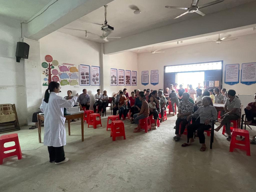 講座中,葉汝萍從“高血壓病的診斷”“五類常用的降壓藥物”“降壓藥服用方法”“血壓控制目標(biāo)”“高血壓用藥常見10個錯誤”五個小點(diǎn)展開,結(jié)合當(dāng)?shù)仫嬍沉?xí)慣與現(xiàn)場群眾互動,將健康生活理念融入慢病管理思路中。隨后,葉汝萍為部分群眾測量血壓并解答有關(guān)慢病規(guī)范治療管理等內(nèi)容。