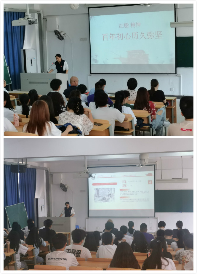 1921—2021,風(fēng)雨百年路,從石庫門到天安門,從興業(yè)路到復(fù)興路,百年大黨繼往開來再出發(fā)。為重溫“紅船精神”,回顧走過的路,醫(yī)學(xué)系黨總支副書記陳潔于2021年5月13日在實訓(xùn)樓304開展“紅船精神,百年初心歷久彌新”專題黨課,第二黨支部全體黨員及入黨積極分子參加了本次的黨課學(xué)習(xí)。