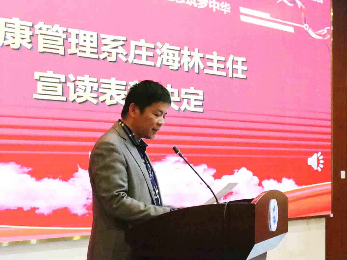 2021年3月25日下午,健康管理系以“建黨百年篳路藍(lán)縷,青年立志筑夢(mèng)中華”為主題,舉行學(xué)生表彰大會(huì)暨2021年“兩項(xiàng)行動(dòng)”啟動(dòng)儀式,大會(huì)表彰了2019~2020學(xué)年先進(jìn)集體和先進(jìn)個(gè)人,啟動(dòng)了健康管理系2021年迎接建黨100周年“建黨百年”行動(dòng)和“學(xué)生管理質(zhì)量提升”行動(dòng)。校領(lǐng)導(dǎo)陳貞健副院長(zhǎng)出席活動(dòng)并講話,學(xué)工部副部長(zhǎng)張麗萍、系關(guān)工委鄭向紅主任、王屏副主任、伍麗萍老師,系黨政班子成員及全體教職工和學(xué)生代表400多人參加活動(dòng)。