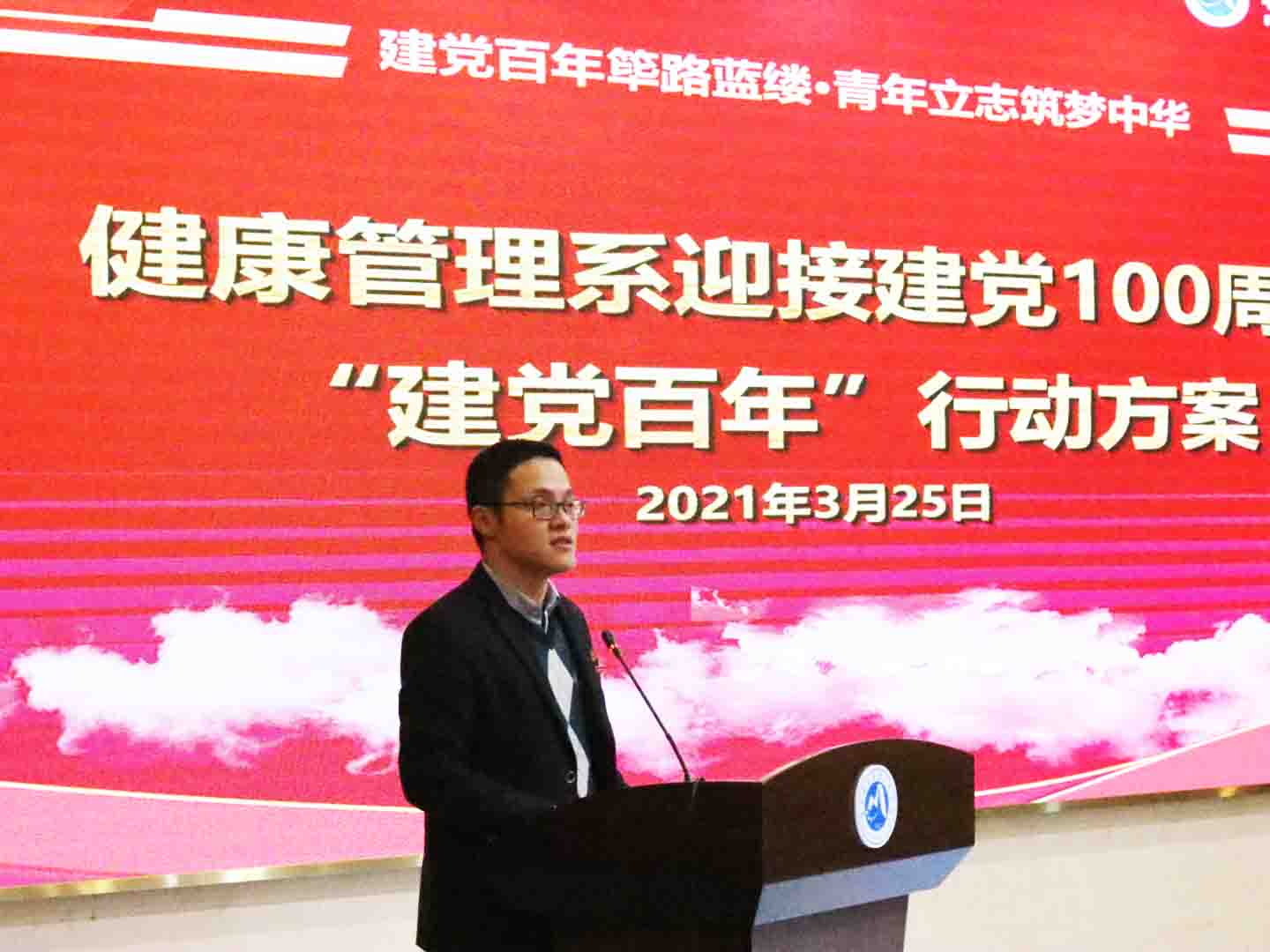 學(xué)黨史,迎接中國(guó)共產(chǎn)黨成立100周年。黨總支書記黃曦介紹了健康管理系迎接建黨100周年“建黨百年”行動(dòng)方案。行動(dòng)方案確定了全覆蓋開展黨史學(xué)習(xí)、開展“我為群眾辦實(shí)事”實(shí)踐活動(dòng)、開展慶祝建黨 100 周年文化活動(dòng)、推進(jìn)新時(shí)代基層黨的組織建設(shè)四個(gè)方面16條措施,推動(dòng)全系師生學(xué)黨史、悟思想、辦實(shí)事、開新局。師生們還共同觀看短片《共產(chǎn)主義信仰》,追憶百年黨史,領(lǐng)悟初心使命,激揚(yáng)青春夢(mèng)想,勇?lián)鷷r(shí)代重任。