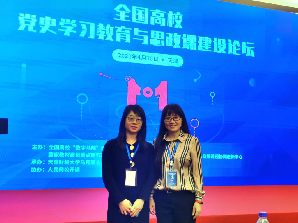 為深入學(xué)習(xí)貫徹落實(shí)習(xí)近平總書記在學(xué)校思想政治理論課教師座談會和黨史學(xué)習(xí)教育動員大會上的重要講話精神,推進(jìn)“數(shù)字馬院”建設(shè),2021年4月9日至4月11日,馬克思主義學(xué)院院長熊美蘭與吳薇老師赴天津參加全國高校黨史學(xué)習(xí)教育與思政課建設(shè)論壇。
