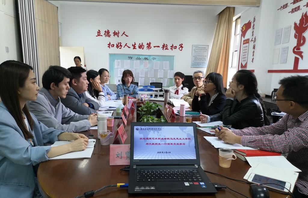2021年5月6日上午,福建藝術(shù)職業(yè)學(xué)院馬克思主義學(xué)院院長(zhǎng)鄭元?jiǎng)P一行5人來我校馬克思主義學(xué)院進(jìn)行調(diào)研交流,馬克思主義學(xué)院院長(zhǎng)熊美蘭熱情接待并在行政樓辦公室107開展調(diào)研交流座談會(huì)。