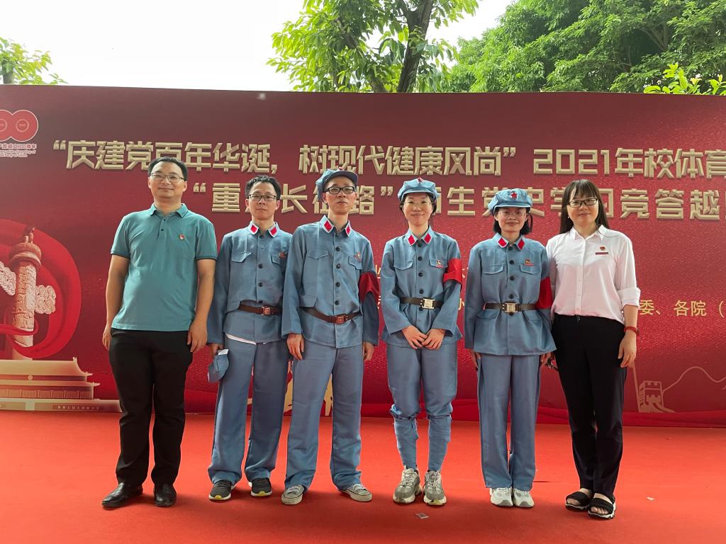 在中國共產(chǎn)黨建黨100周年來臨之際,為傳承黨的紅色基因,發(fā)揚(yáng)黨的優(yōu)良作風(fēng),弘揚(yáng)革命精神,引導(dǎo)廣大師生積極參與體育運(yùn)動,增強(qiáng)體魄,提高身心素質(zhì),2021年5月27日下午,學(xué)校舉行“慶建黨百年華誕,樹現(xiàn)代健康風(fēng)尚”2021年校體育文化節(jié)啟動儀式及“重走長征路”之師生黨史學(xué)習(xí)競答越野賽。馬克思主義學(xué)院院長熊美蘭、參賽代表胡濟(jì)林老師、顏冰鳳老師、張?zhí)煳睦蠋煛⒘_蕓老師及相關(guān)教師參加了活動。