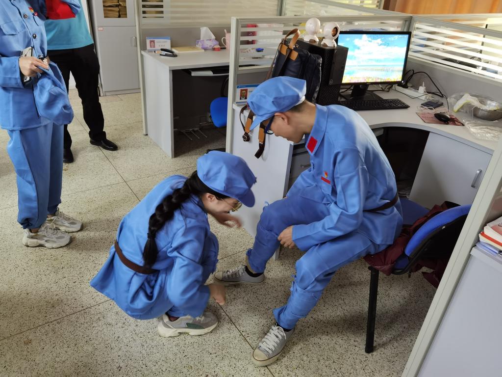 在體育文化節(jié)啟動儀式現(xiàn)場,全體在場師生高唱國歌。一身紅軍服裝的參賽教師黨員,莊嚴(yán)地面向黨旗,重溫入黨誓詞。體育文化節(jié)啟動儀式結(jié)束后,隨即進(jìn)行“重走長征路”之師生黨史學(xué)習(xí)競答越野賽。四名參賽教師不畏困難,努力拼搏,以“答黨史、急行軍”的特殊方式,重走長征路,重溫那段可歌可泣的歷史,領(lǐng)悟偉大的長征精神,在新的長征路上繼續(xù)奮勇前進(jìn)。