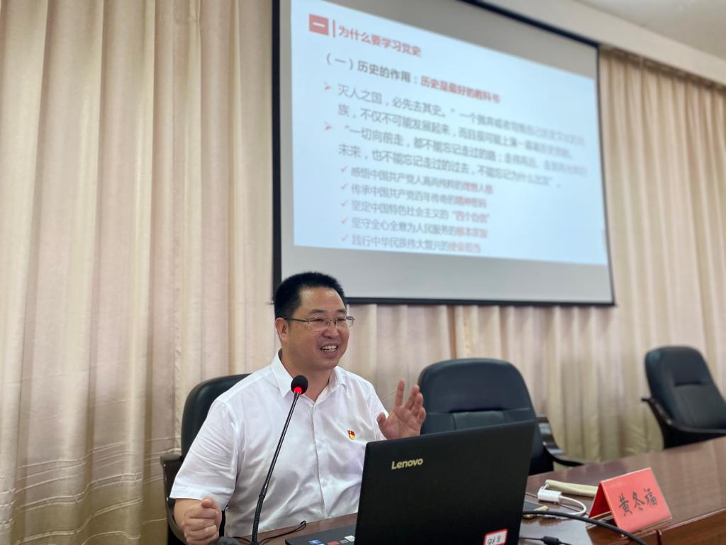 講座中,黃冬福教授以其深厚的學(xué)術(shù)功底、飽滿的熱情、生動的語言圍繞學(xué)習(xí)研究黨史的目的意義、黨史重要理論內(nèi)涵、學(xué)習(xí)黨史的方法論以及如何做好黨史的忠實傳人等四大方面,深入淺出地闡釋了為什么要學(xué)習(xí)研究黨史、怎樣學(xué)習(xí)研究黨史、如何做好新時代的黨史傳人。