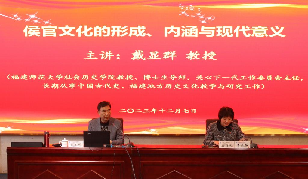為更好增強(qiáng)歷史自覺、堅定文化自信,12月7日下午,校黨委副書記李美華主持召開黨委理論學(xué)習(xí)中心組(擴(kuò)大)會議,邀請福建師范大學(xué)社會歷史學(xué)院戴顯群教授為我們帶來《侯官文化的形成、內(nèi)涵與現(xiàn)代意義》的專題講座。