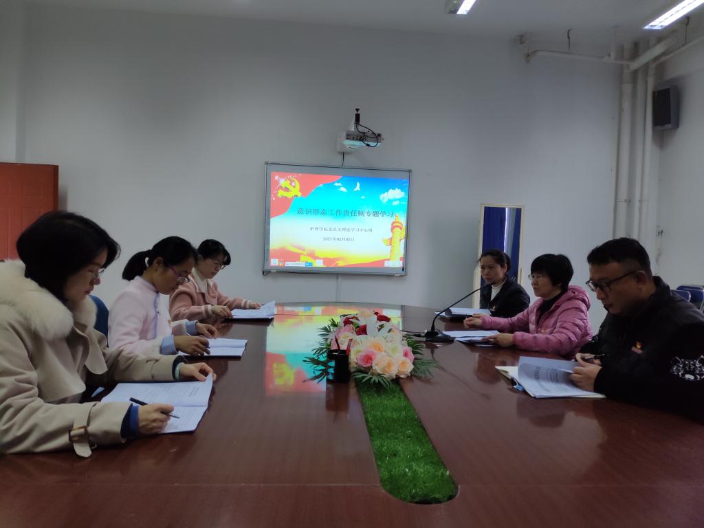 2021年2月2日,為落實(shí)意識(shí)形態(tài)工作責(zé)任,進(jìn)一步推動(dòng)意識(shí)形態(tài)工作扎實(shí)開(kāi)展,護(hù)理學(xué)院黨總支書(shū)記謝濤主持召開(kāi)護(hù)理學(xué)院黨總支中心組意識(shí)形態(tài)工作責(zé)任制專題學(xué)習(xí)會(huì)議,學(xué)習(xí)《福建衛(wèi)生職業(yè)技術(shù)學(xué)院意識(shí)形態(tài)工作責(zé)任制實(shí)施辦法》。