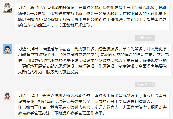 隨后,支部黨員發(fā)表了學(xué)習(xí)心得,紛紛表示要牢記囑托、奮勇前進(jìn),把習(xí)近平總書(shū)記的親切關(guān)懷和重要講話精神轉(zhuǎn)化為做好各項(xiàng)工作的強(qiáng)大動(dòng)力,在服務(wù)和發(fā)展學(xué)院的格局上展現(xiàn)更大作為,為奮力譜寫(xiě)全面建設(shè)社會(huì)主義現(xiàn)代化國(guó)家福建篇章作出更大貢獻(xiàn)。