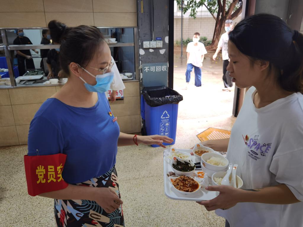 支部黨員在明湖餐廳監(jiān)督師生的節(jié)約用餐行為,在餐具回收區(qū)勸導(dǎo)師生按需取餐,積極倡導(dǎo)師生踐行光盤行動。此次愛糧節(jié)糧宣傳活動,提高了支部黨員節(jié)糧愛糧、厲行節(jié)約、反對浪費意識,也以實際行動踐行和傳播節(jié)糧愛糧的美好品質(zhì)。