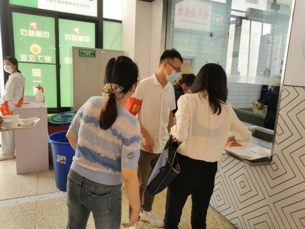 10月14日中午,學生黨支部書記帶領學生支部黨員及入黨積極分子前往學校餐廳開展餐飲浪費檢查,引導同學們文明就餐,不要鋪張浪費。同時對習近平總書記關于糧食安全的重要論述精神進行宣傳教育,增強了師生“糧安就是心安”的意識。