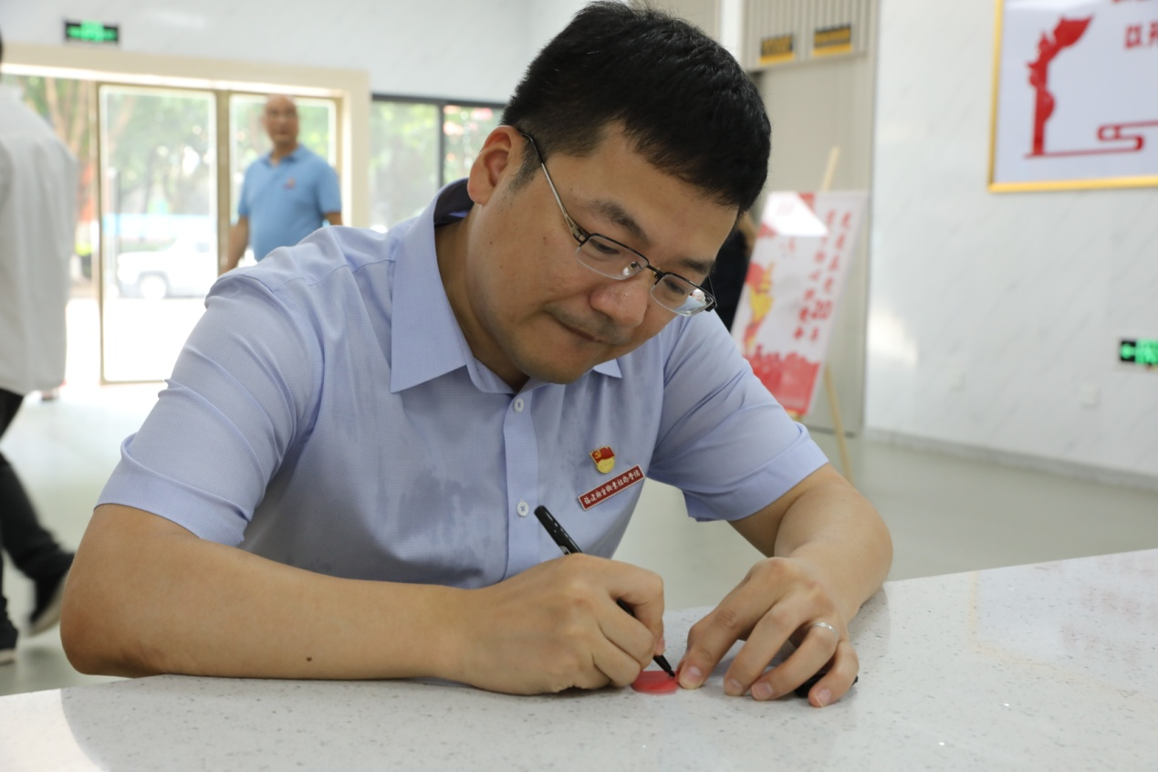 活動(dòng)中,大家莊重地在“初心”牌上寫(xiě)下自己的名字,并將“初心”投入與自己黨齡相對(duì)應(yīng)的榮譽(yù)框中,以這種特殊的方式,讓全體黨員時(shí)刻牢記中國(guó)共產(chǎn)黨人的初心和使命,忠實(shí)踐行為師生服務(wù)的宗旨,切實(shí)發(fā)揮黨員的先鋒模范作用。