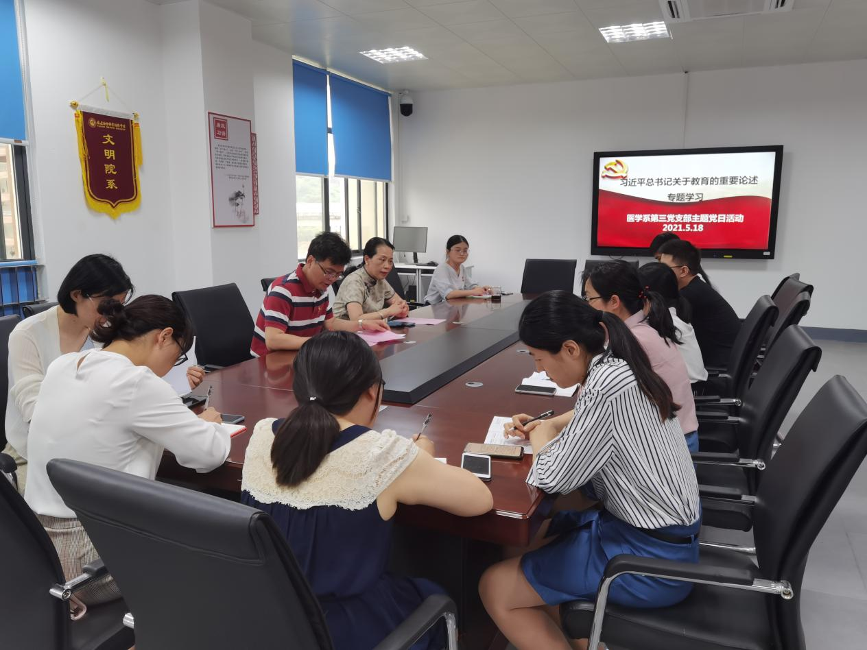 為深入學(xué)習(xí)貫徹習(xí)近平總書記關(guān)于教育工作的重要論述,增強教師黨員同志先鋒意識, 5月18日中午,醫(yī)學(xué)系第三黨支部在實訓(xùn)樓311開展學(xué)習(xí)“習(xí)近平總書記關(guān)于教育的重要論述”主題黨日活動。第三黨支部全體黨員參加了本次大會,活動由支部書記陳銘主持。