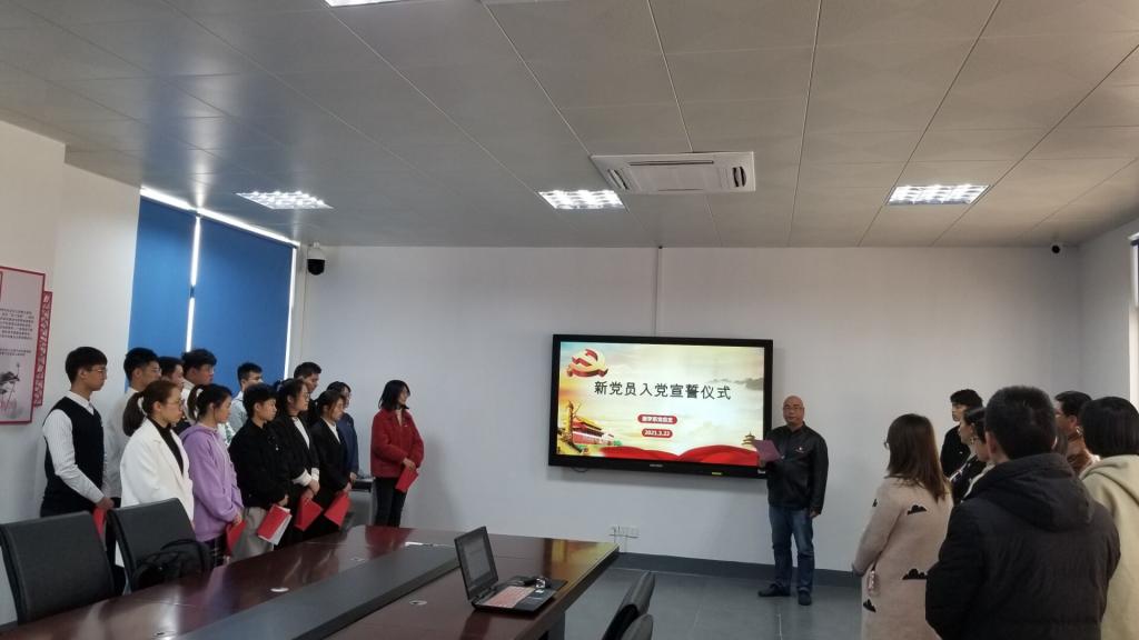 為進一步加強黨員黨性教育,增強新黨員光榮感和使命感,3月22日中午,我系黨總支在實訓樓311舉行新黨員入黨宣誓暨老黨員重溫入黨誓詞儀式。黨總支書記邱滾忠、副書記陳潔、總支委員、各支部委員以及新黨員參加了儀式。