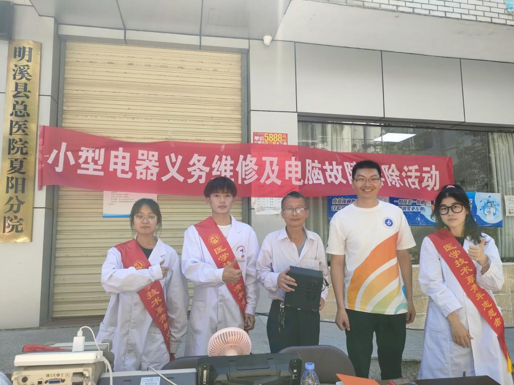為了能將所學(xué)知識(shí)轉(zhuǎn)化為實(shí)踐技能服務(wù)群眾醫(yī)學(xué)技術(shù)系第二黨支部雙帶頭人黨支部書記、醫(yī)學(xué)技術(shù)系副主任鐘偉雄帶領(lǐng)創(chuàng)新創(chuàng)業(yè)訓(xùn)練營(yíng)的同學(xué)們加入醫(yī)學(xué)技術(shù)系暑期“三下鄉(xiāng)”紅色筑夢(mèng)隊(duì),于6月30日赴三明市明溪縣夏陽(yáng)鄉(xiāng)開展小型電器義務(wù)維修及電腦故障排除社會(huì)實(shí)踐活動(dòng)。醫(yī)學(xué)技術(shù)系黨總支書記柯瓊鶯、黨總支副書記林燕、醫(yī)學(xué)技術(shù)系關(guān)工委委員鄭韻芳、醫(yī)學(xué)技術(shù)系團(tuán)總支書記林詩(shī)雨、副書記鄭語(yǔ)琪一同參與志愿服務(wù)。