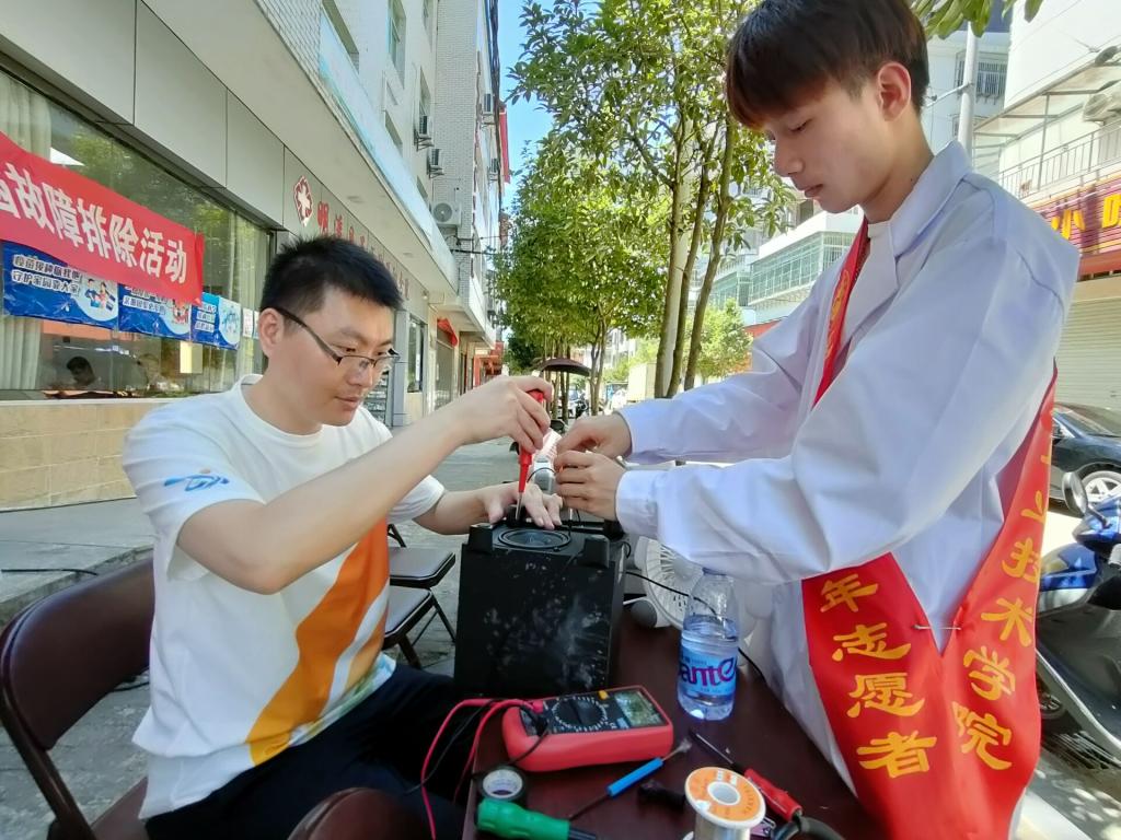 為了保障維修成效,師生們準(zhǔn)備充分,攜帶了萬(wàn)用表、電烙鐵、螺絲刀、吸錫器等專業(yè)工具和數(shù)字存儲(chǔ)示波器、數(shù)控直流電源、函數(shù)信號(hào)發(fā)生器、電容電感測(cè)量?jī)x等精密檢測(cè)儀器,以及一些常規(guī)小配件。大家分工明確、積極宣傳、團(tuán)結(jié)協(xié)作,聞?dòng)嵍鴣?lái)的村民絡(luò)繹不絕,紛紛將家中因損壞閑置的小家電帶到活動(dòng)現(xiàn)場(chǎng)。